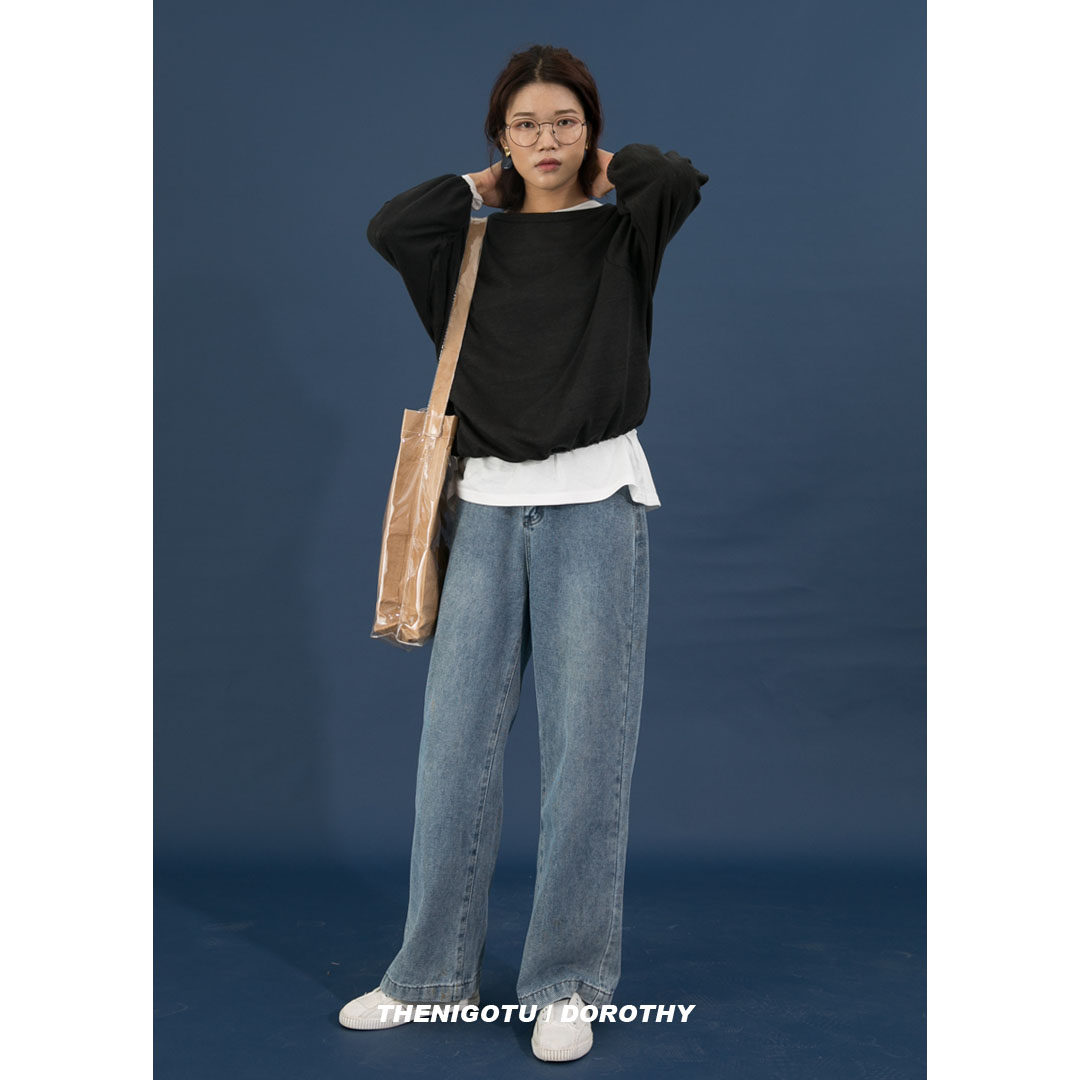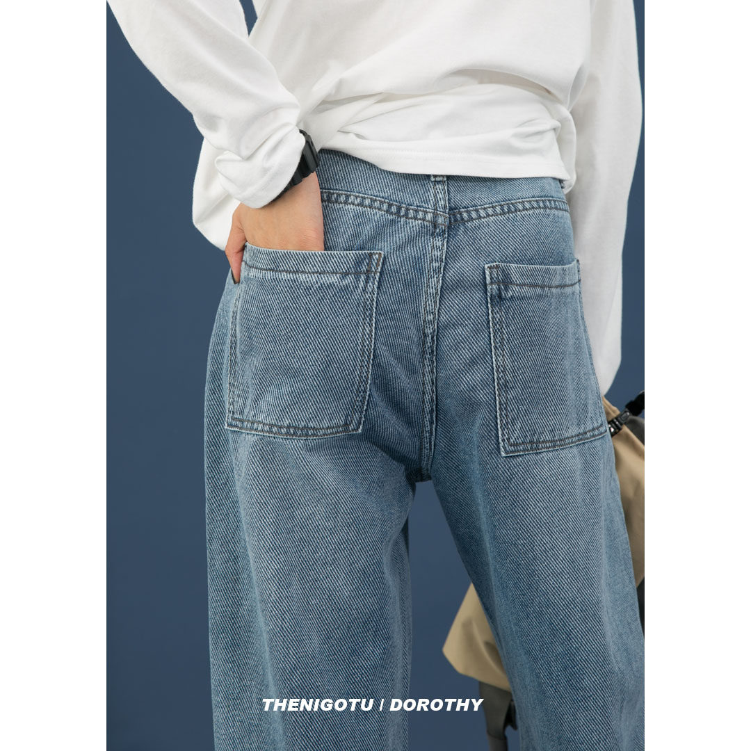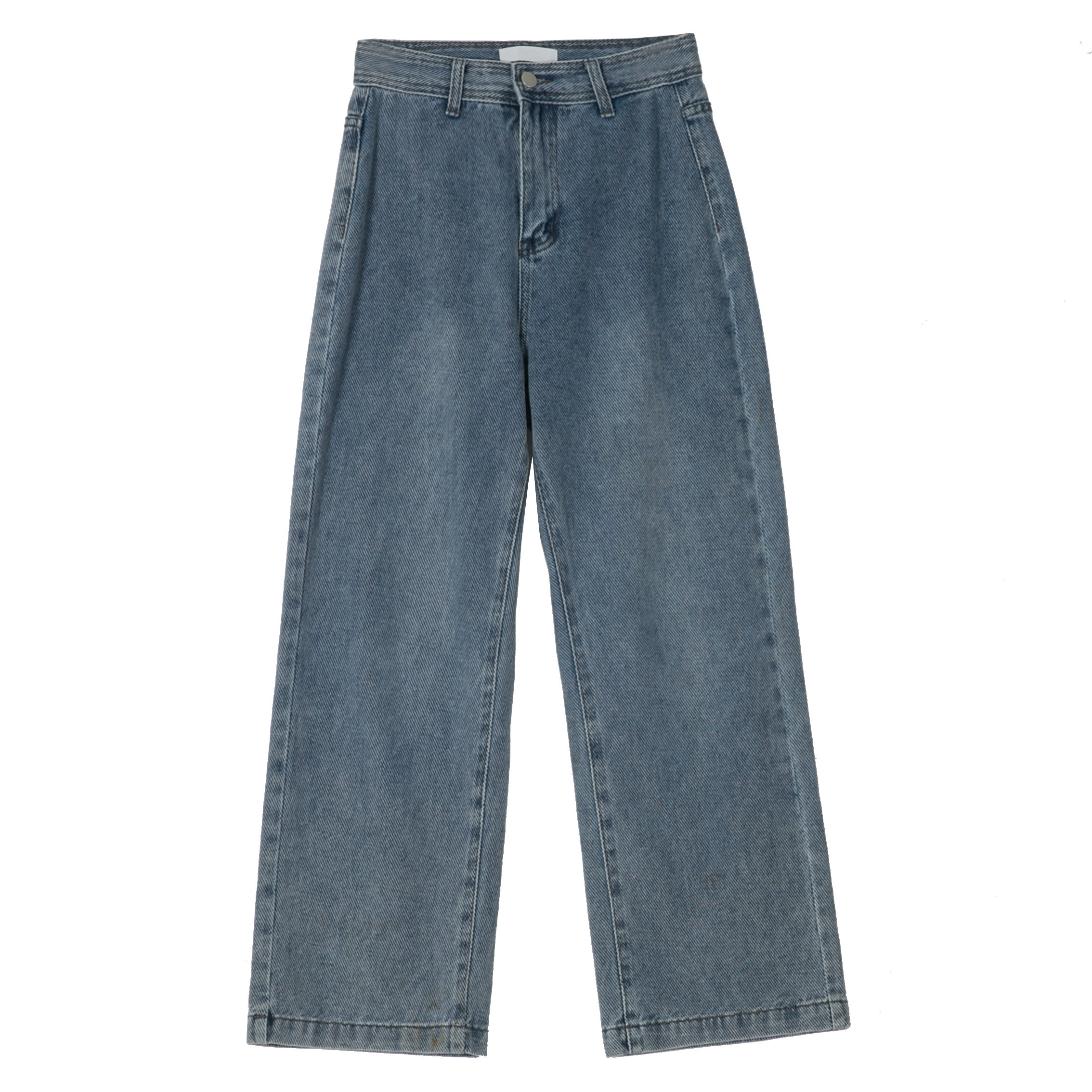 Han edition high waist loose do old water wash coarse tilted jeans woman 2022 new casual straight tube broad leg pants autumn tide