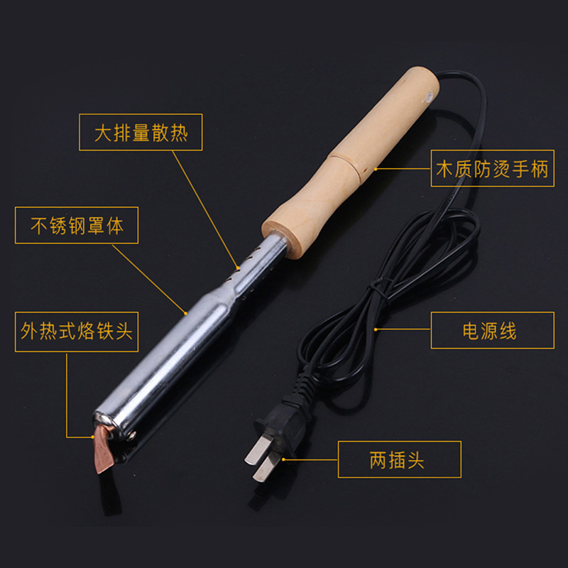 High-power wooden handle electric soldering iron tool set Household constant temperature welding pen flat head electric Luo iron repair copper external heat type