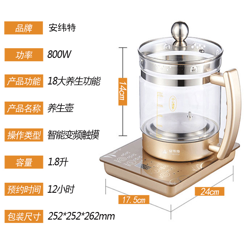 Multifunction wellness pot thickened glass home cooking tea with black tea fully automatic boiling water pot frying pot