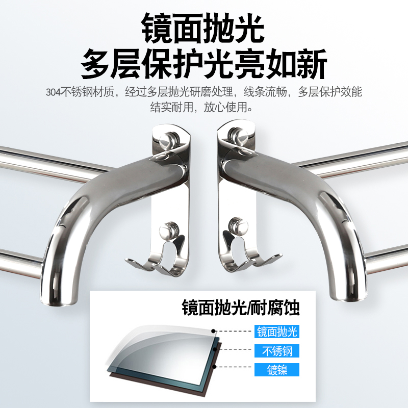 304 Towel Rod towel rack free of perforated dressing room Stainless Steel Hanging Rod Bathroom Toilet Rod Wall-mounted Fur Towel Rack