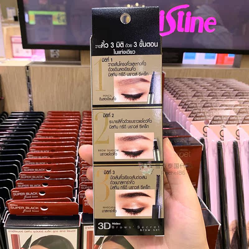 Thailand's Mistine3D three-dimensional eyebrow pencil eyebrow powder dyed eyebrow cream three-in-one long-lasting one-word eyebrow waterproof and sweat-proof