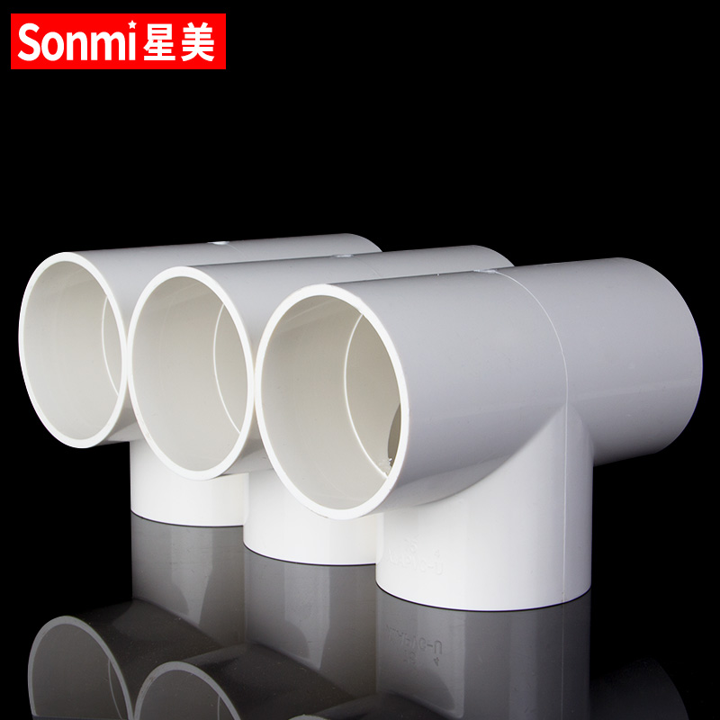 PVC tee plane equal diameter positive trident head joint plastic water pipe fittings 90 110 125 160 200