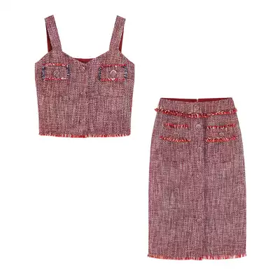 (Limited time clearance) Xia Shiwen celebrities wind suspenders top long skirt retro two-piece set female