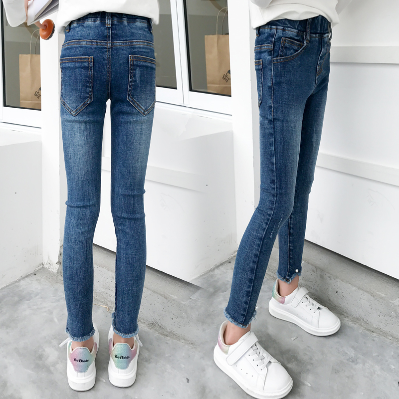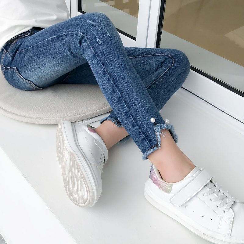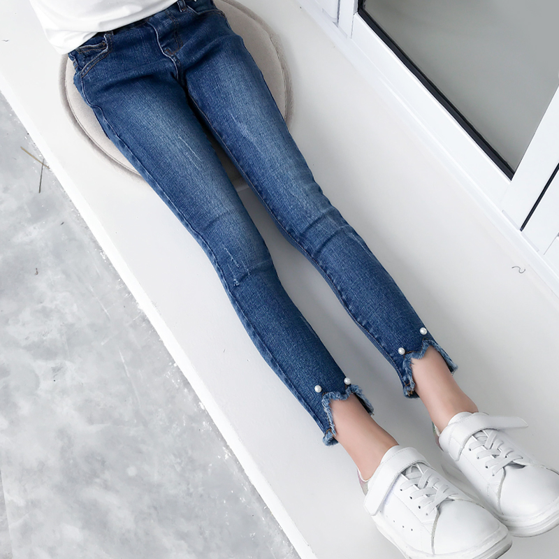Girls jeans spring and autumn new beaded cigarette tube pants Korean version of the Foreign school children's clothing female children's trousers children's pants