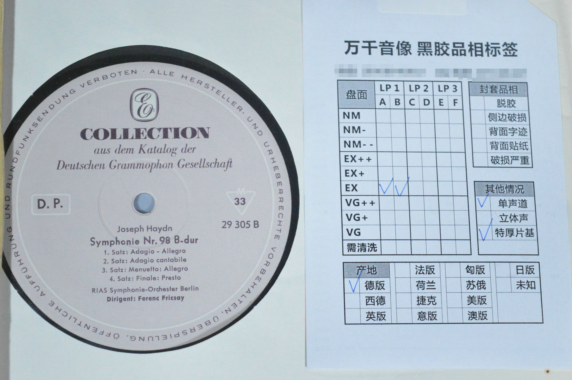 Haydn Symphony No. 95 98 Fricsay Haydn Symphony Vinyl LP