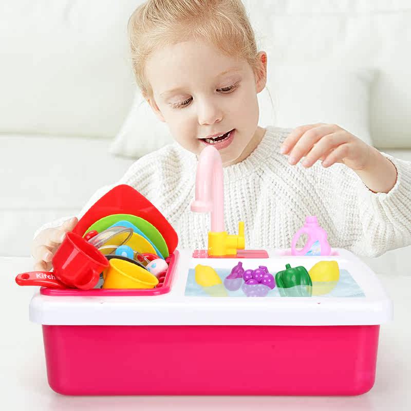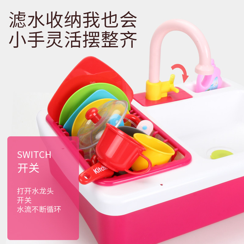 Belle Stars Automatic Cycle Water Out Dishwashing Pool Toys Puzzle simulation Kitchen Children Cook up a Home Wine Little Pool