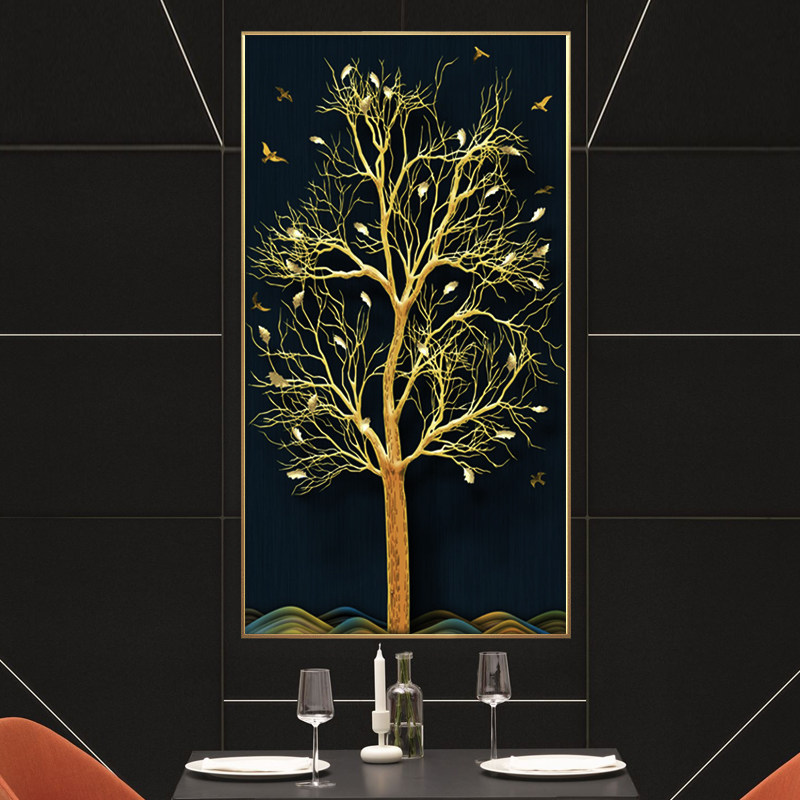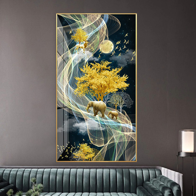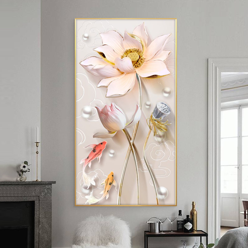 Light luxury porch decorative painting vertical version modern minimalist atmosphere corridor aisle wall hanging painting koi nine fish crystal porcelain painting