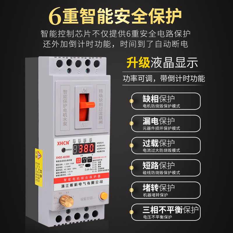 Digital display three-phase intelligent lack of phase overload leakage water pump ventilator motor comprehensive protector protection switch 380V