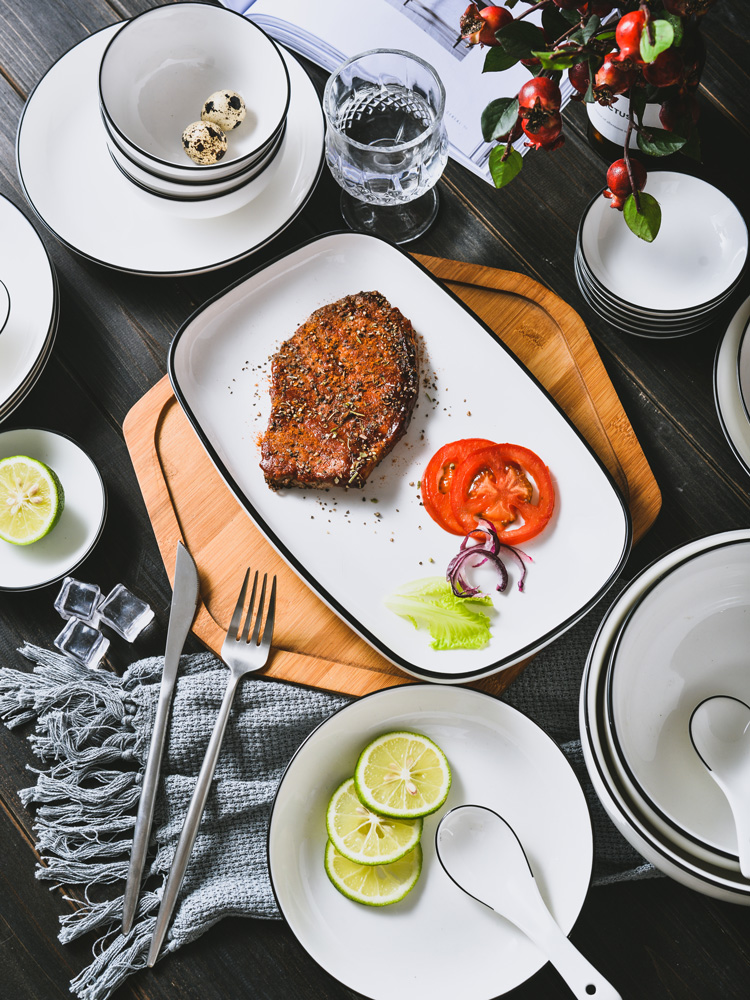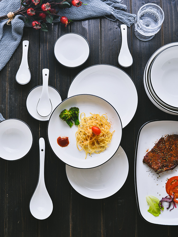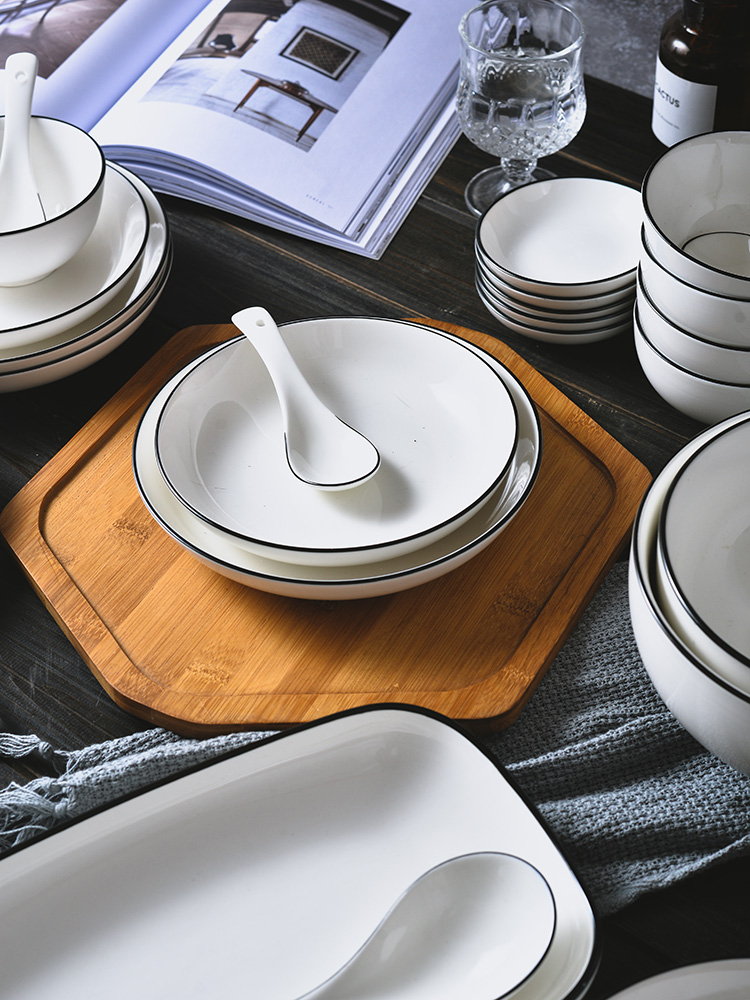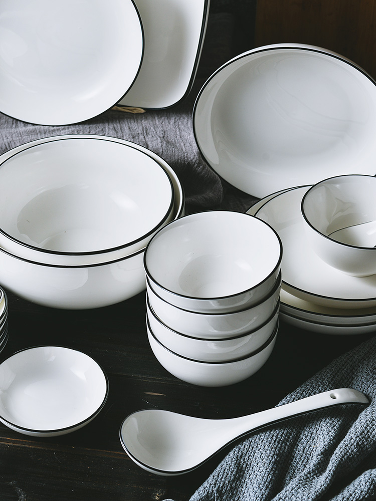 A world for two (spoon, 2 rice bowls, 2 seasoning plates, 2 7-inch plates, 8-inch plates) a family of three (spoons, 4 rice bowls, 4 flavor plates, 4 7-inch plates, 2 8-inch plates, 2 8-inch soup bowls, and spoons