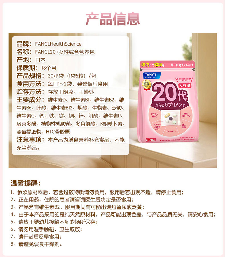 Japan Spot FANCL20 -30 Generation Fangke Female Women's Compound Vitamin Tablets Nutrients