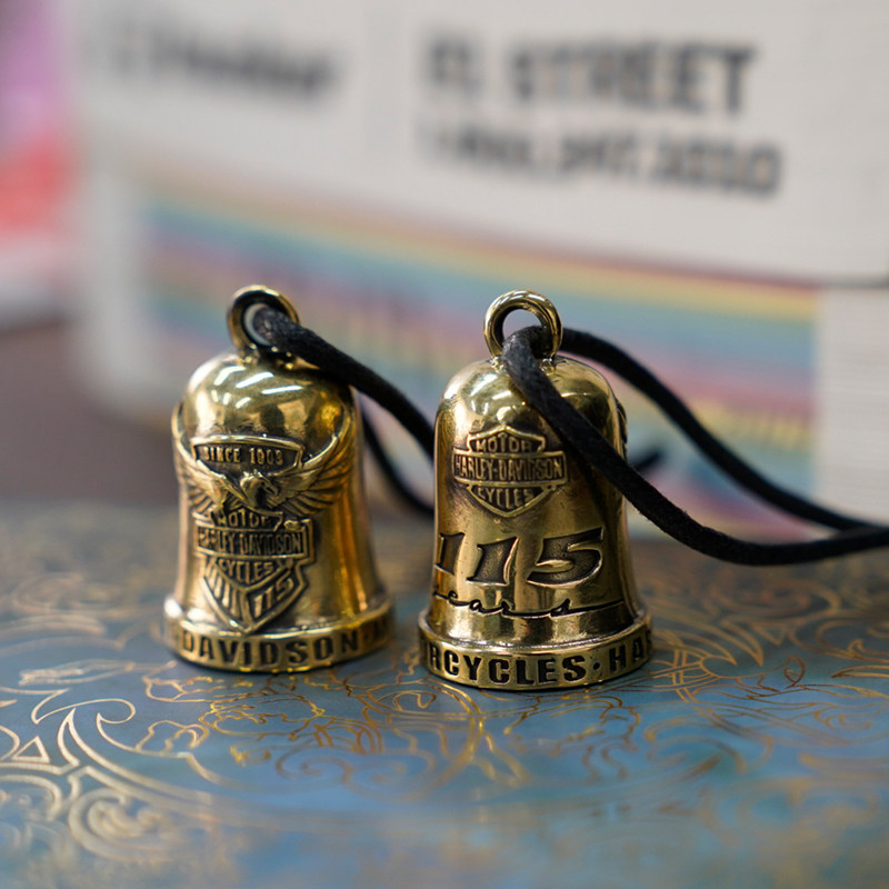 Harlekin Indian motorcycle fitted with good luck bells 115 anniversary of eagle skeleton bells