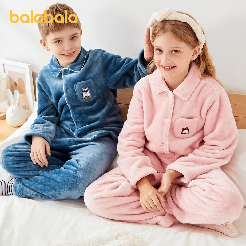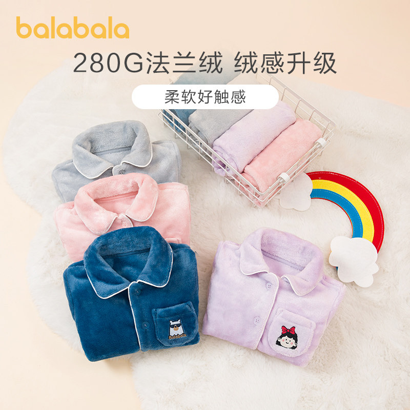 Balabala Children's pyjamas winter thickened Boy girl Home Clothing Suit Flannel Two Sets Warm