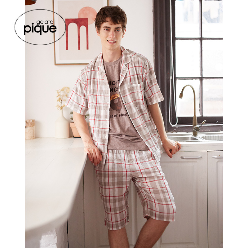 gelato pique autumn and winter men's pajamas white printing comfortable home PMCT194933
