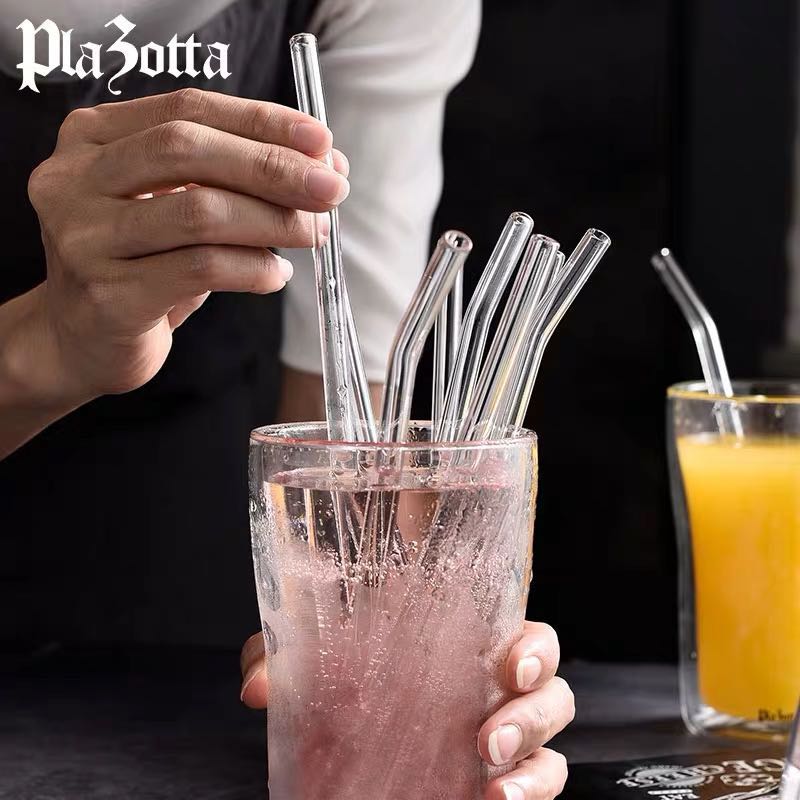 German plazotta glass straws adult anti-lipstick red transparent juice drinking tube hard heat resistant and environmentally friendly glass
