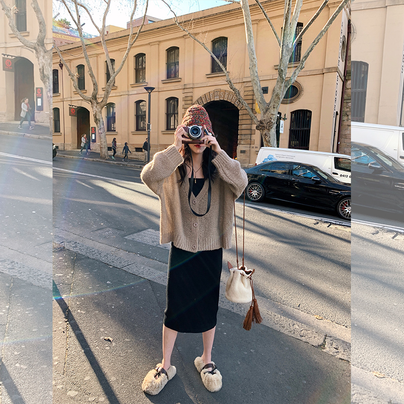 Zhang Bebeibelll College Wind 100 lap blouses Loose Pure Color Sweater Knitted Cardiovert for the Han version of the Coat Woman