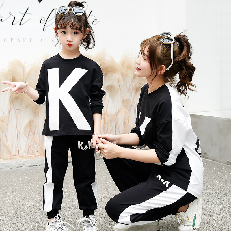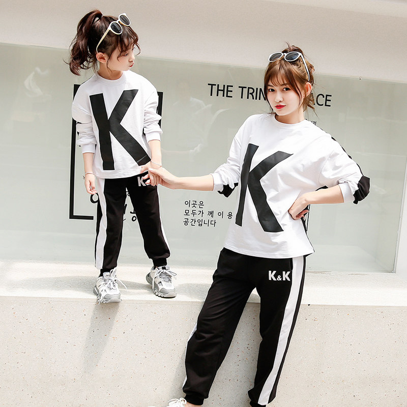 Different parent - child clothing 2023 Spring and Autumn new children's clothing KK team suit two - piece sets