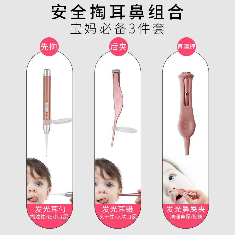 Ear-ear deity Ears Tool Children Shine ear spoons dig ears with light tweezers clips visible and nasal shit
