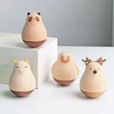 Cartoon ins wooden tumbler ornaments creative office desktop decompression toy birthday gift