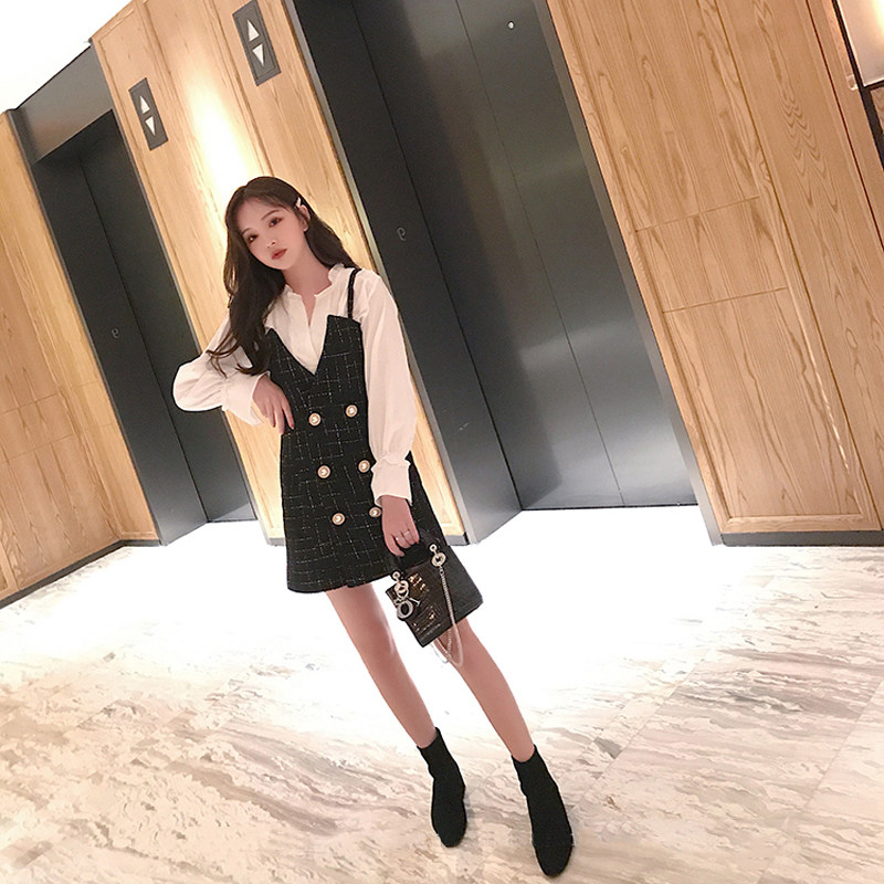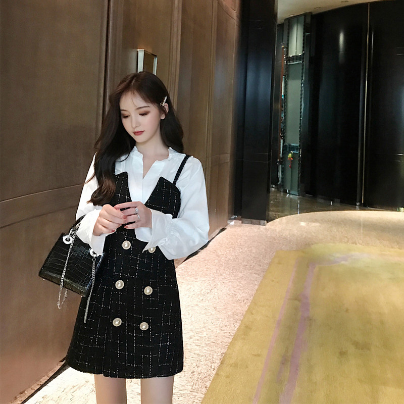Autumn 2021 new early autumn French dress women's autumn suit suspender skirt fairy super fairy Sen department