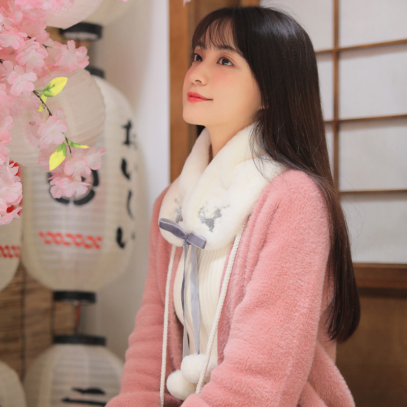 Scarf women's winter Korean version cartoon student wild girl Japanese gloves Two-piece set with gift box stuffed plush