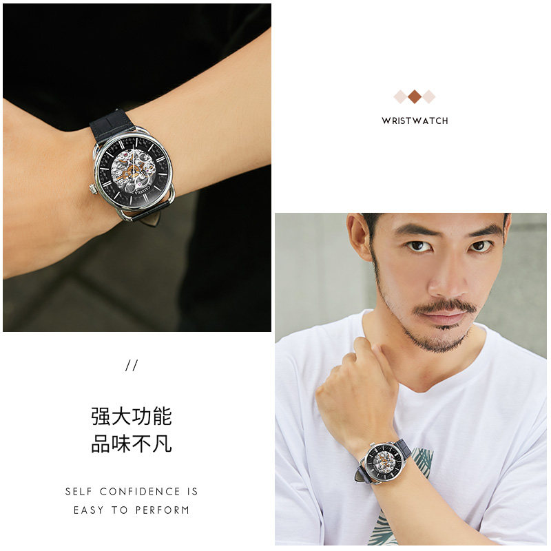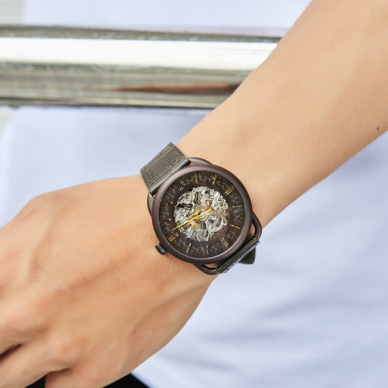 Corolla automatic mechanical watch hollow coffee large dial men's watch leather belt waterproof men's watch tide