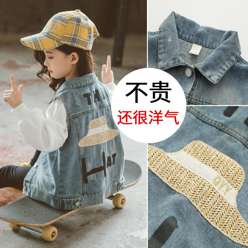 Girl Cowboy Waistcoat Spring Dress New Outwear With Macclip Children CUHK Boy Trendy Kan Shoulder Foreign Pie Spring Autumn Little Vest