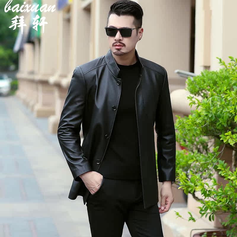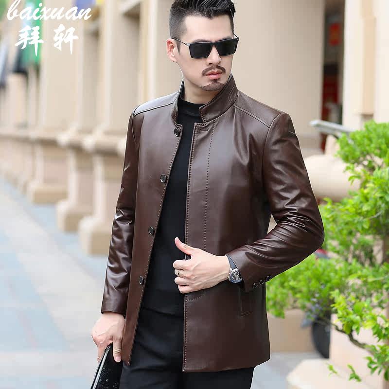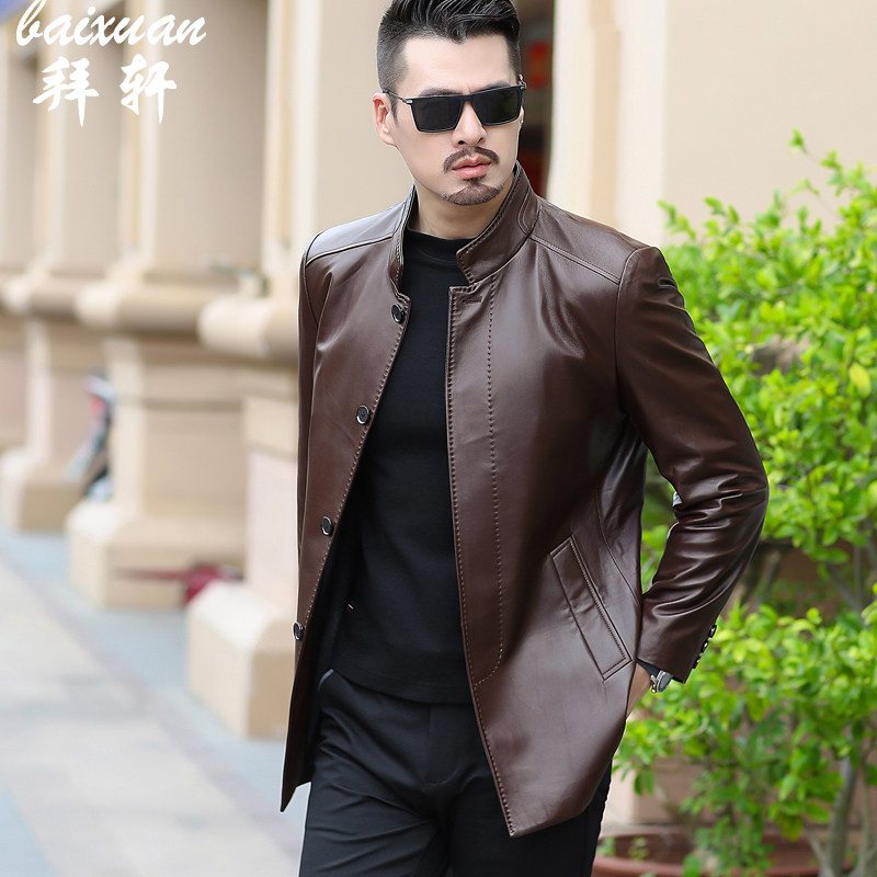 Haining leather leather men's middle-aged spring and autumn stand-up collar men's coat new business casual 40-50 years old dad outfit