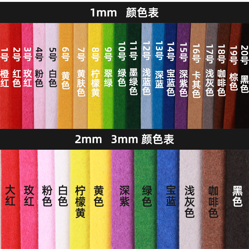 White yellow red light grey green light blue dark blue black ink green coffee color lemon yellow dark purple bao blue Cub green orange red pink pink yellow color card with brown 1mm unwoven cloth (5 yards)