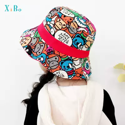 Children fisherman's hat spring and autumn girls sunshade sun hat baby Korean hip hop baby double-sided basin hat boy tide