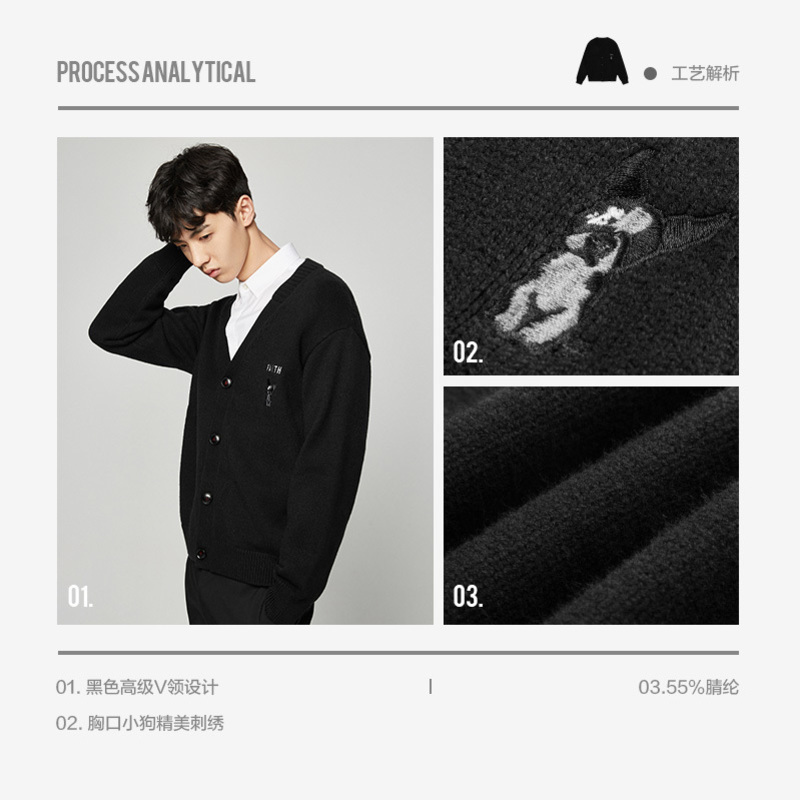 GXG men's 2020 autumn and Winter hot black cardigan cartoon law bucket embroidery retro sweater cardigan men's tide