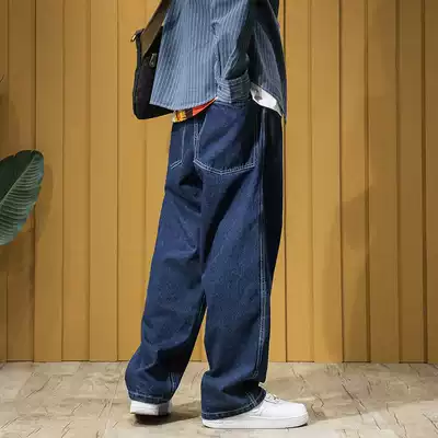 Workers' wide-legged jeans, boys, loose straight, old pants, Tide brand, fat, hip-hop drop, extended pants