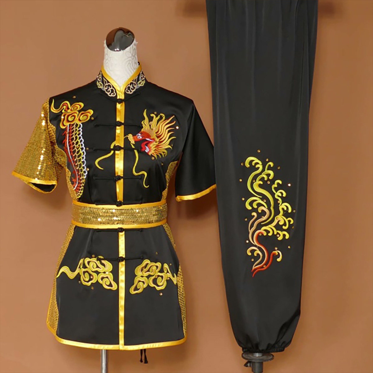 Martial Arts Suit Black Embroidered Blue Dragon Martial Arts Suit Red Gold Bright Pieces Embroidered Gold Sequin Embroidered Gold Sequin Embroidered With Black Gold Bright Pieces Embroidered Black Embroidered Black Embroidered Dragon Black Embroidered Black White Red