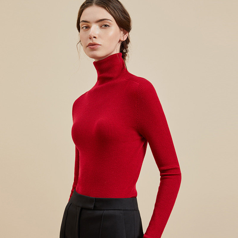 Jinsanta autumn and winter new products high-necked long-sleeved thermal top women's solid color basic thread wool sweater fold