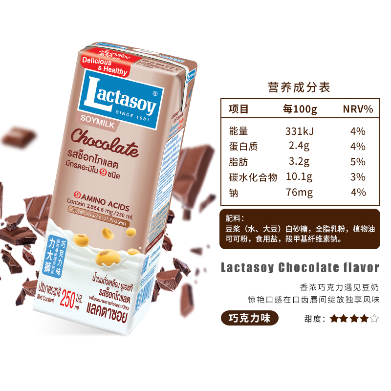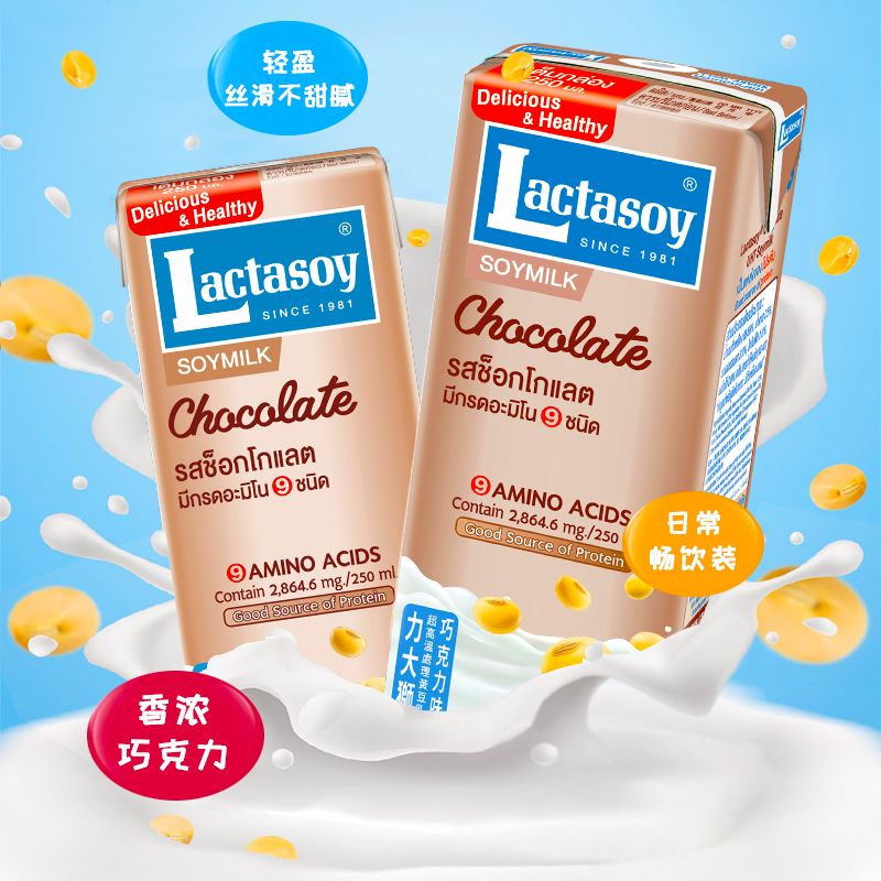 Thailand imported Lactasoy chocolate-flavored soy milk 250ml 6 boxes of nutritious children's student breakfast milk