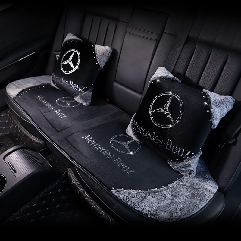 Mercedes car seat cushion car winter short plush seat cushion inlaid with diamonds for men and women four seasons universal butt pad small three-piece set
