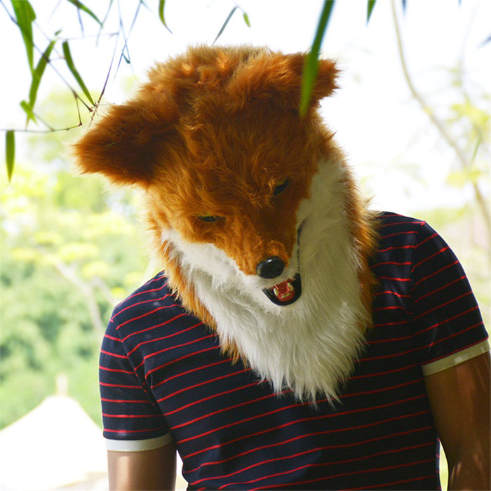 Wildbeast new simulation fox mask fucking fuzzy fox props Halloween headset to move mouth