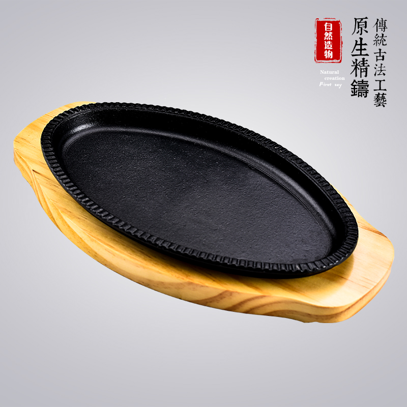 Bamboo Festival Day-Style Egg-shaped Dish Home Western Dining Steak Tray Barbecue Iron Pan Steak Pan Frying Pan Fried Meat Dishes Hotel Commercial
