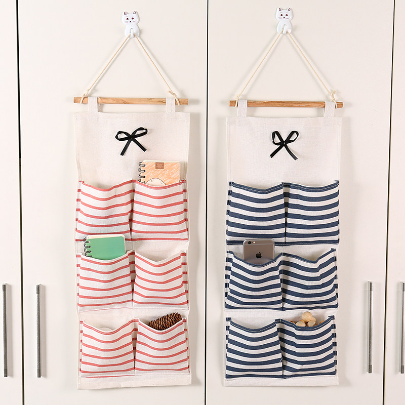 Large Number of Wall Hanging Cotton Hemp Cloth Art Collection Bag Door Rear Things Bag Wall Wall-mounted Multilayer Storage Pocket Hanging Bag Hanging Wall
