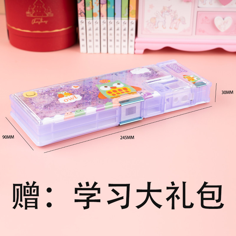 Net red Quicksand stationery box Multi-functional large capacity pen box Girls children kindergarten girls pencil box First grade