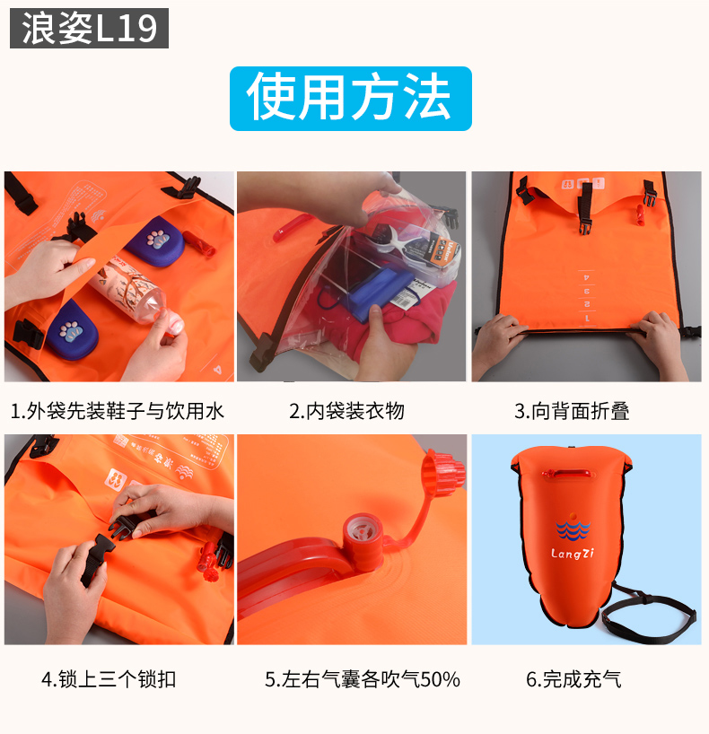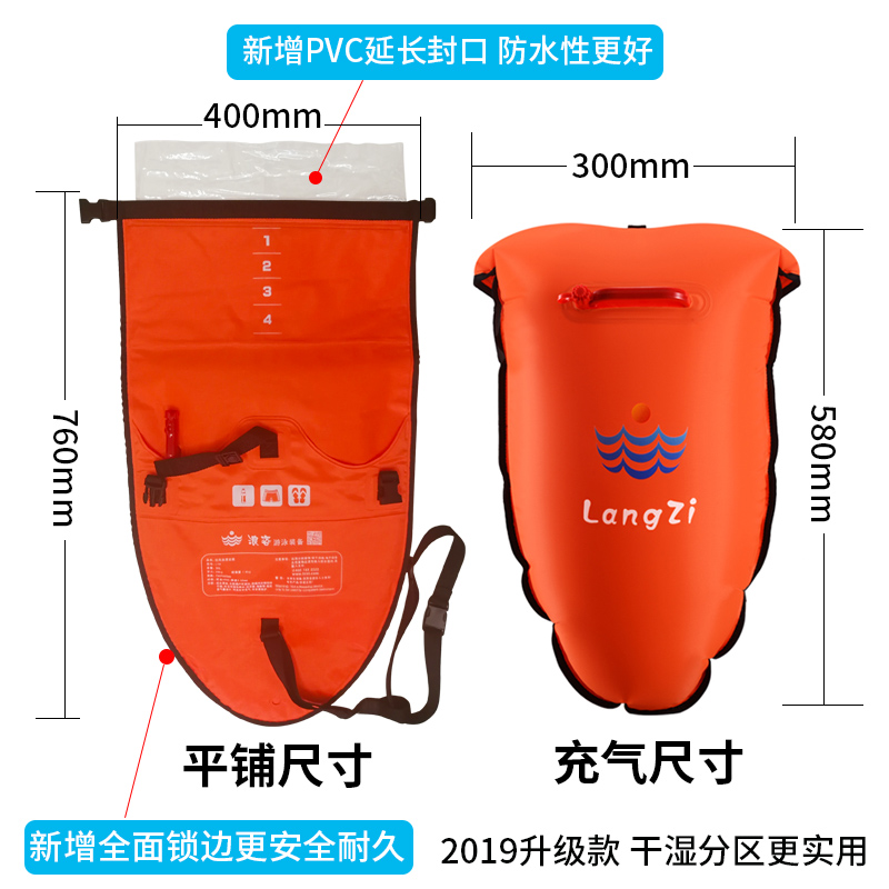 Langzi new dry and wet partition stalker swimming bag adult thickened double airbag waterproof storage drifting bag L19