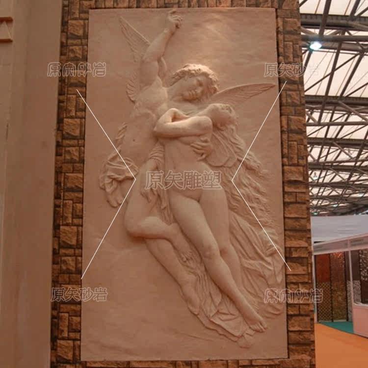 Outdoor Sand Rock Reliefs Custom Sandstone Sculptures Hotel Clubhouse Bar Counter Logo Wall Eurostyle Angel Figure Mural