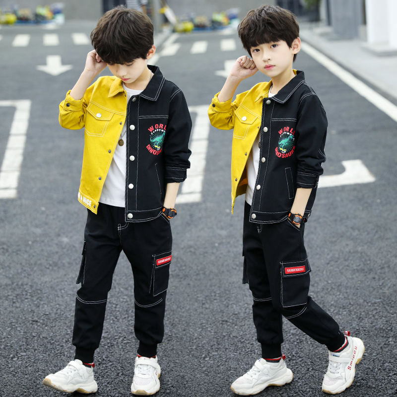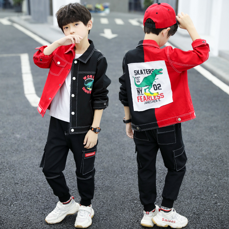 Children's suit Boys 'autumn suit 2021 new Zhongda boy boys' spring and autumn season Foreign school color three-piece set Korean version