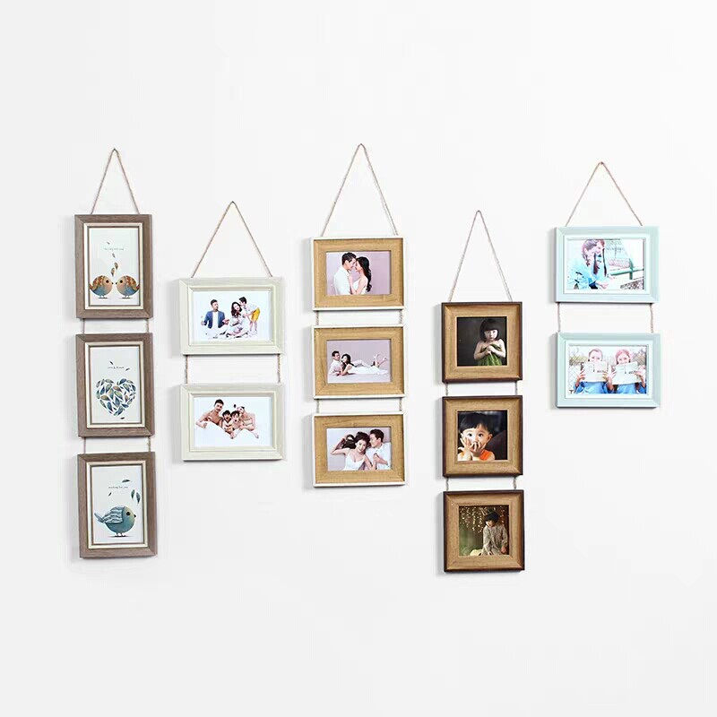 Nordic modern minimalist creative 7 inches combined with children's box Full family Fo 6 inch hanging wall wedding dresses Hemp Rope Photo Wall