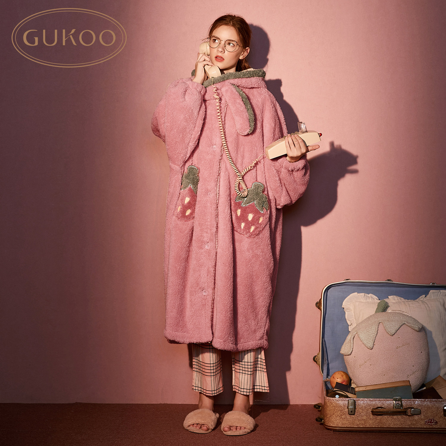 Pajamas Women Autumn Winter Nightgown Winter Coral Fleece Nightgown Nightgown Women Winter Long Sleeves Sweet Strawberry Nightgown Housewear