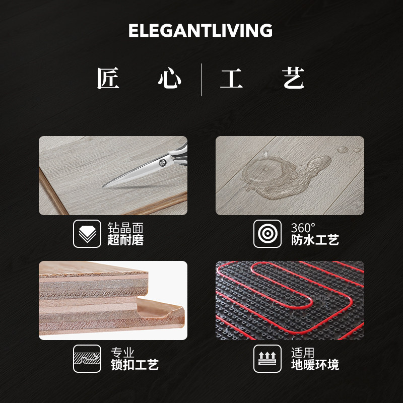 Living home flooring solid wood composite wood flooring wear-resistant new drill crystal floor heating geothermal baroque wood flooring package installation