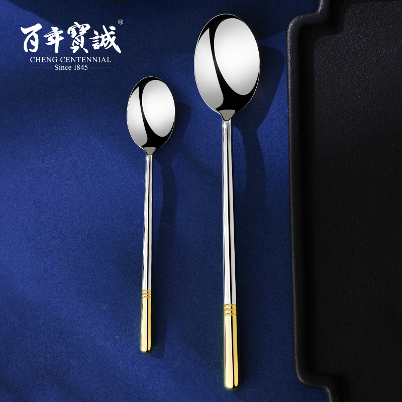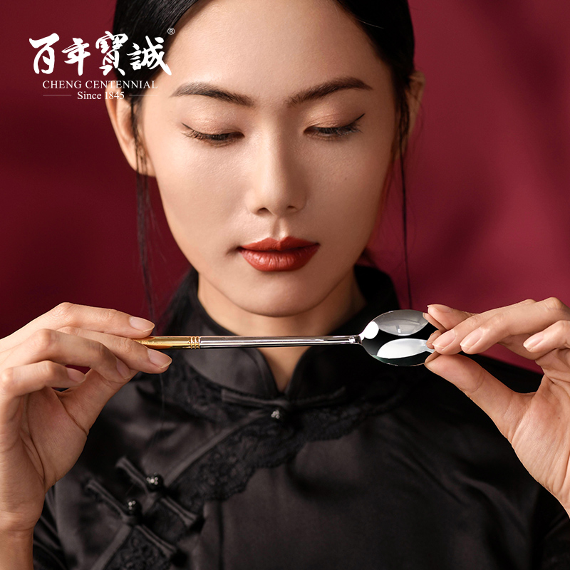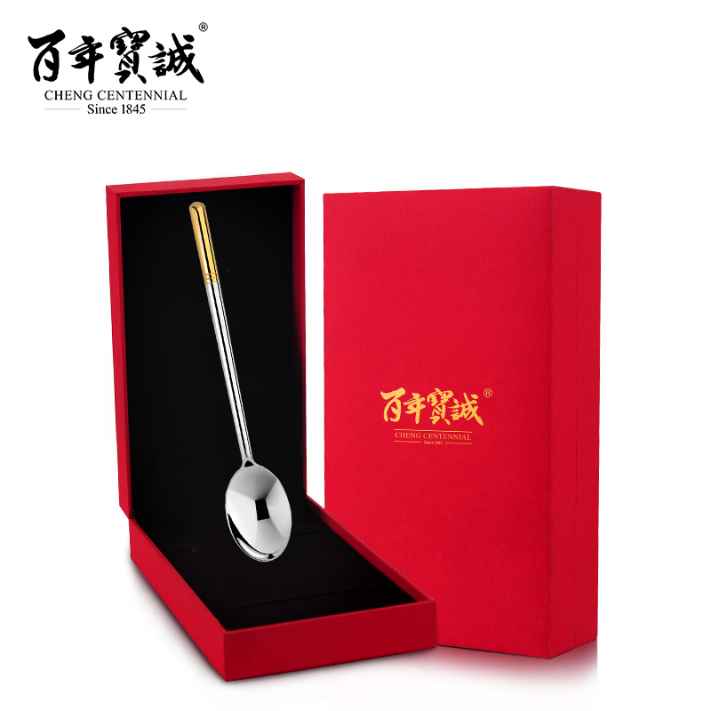 Century Baocheng sterling silver spoon full silver long handle newborn baby children's home delivery baby meal tableware gifts