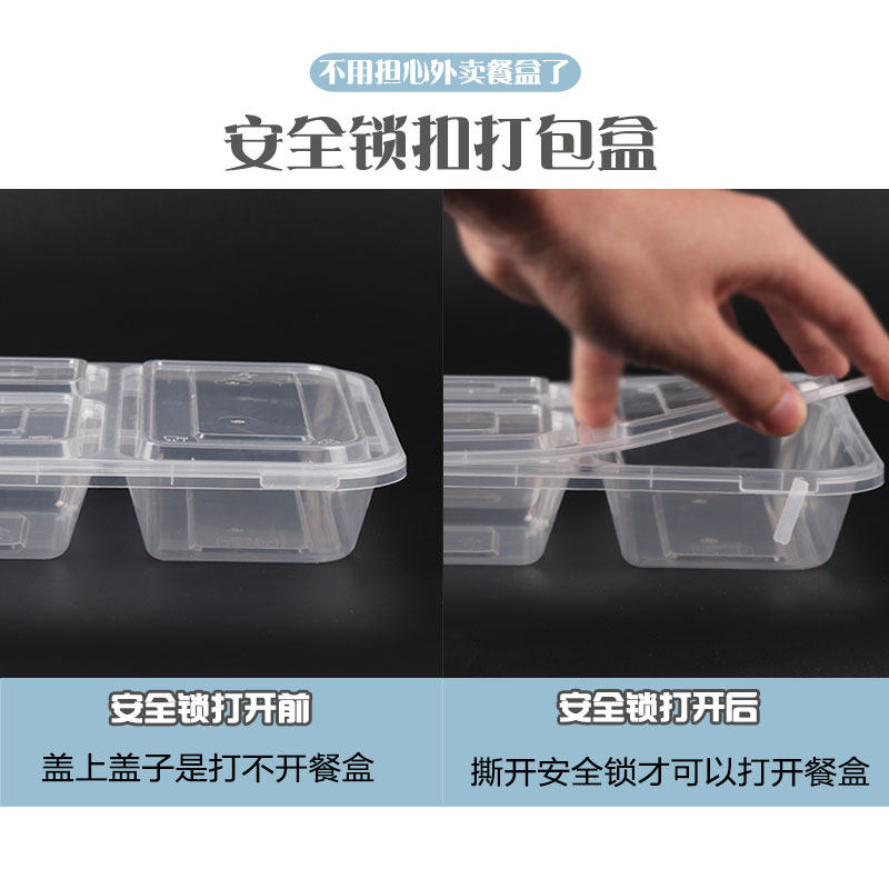 Safety Catch Disposable Meal Kit Rectangular Triple Extra Send Fast Food Packing Box Fruit Lunchbox Thickened With Lid
