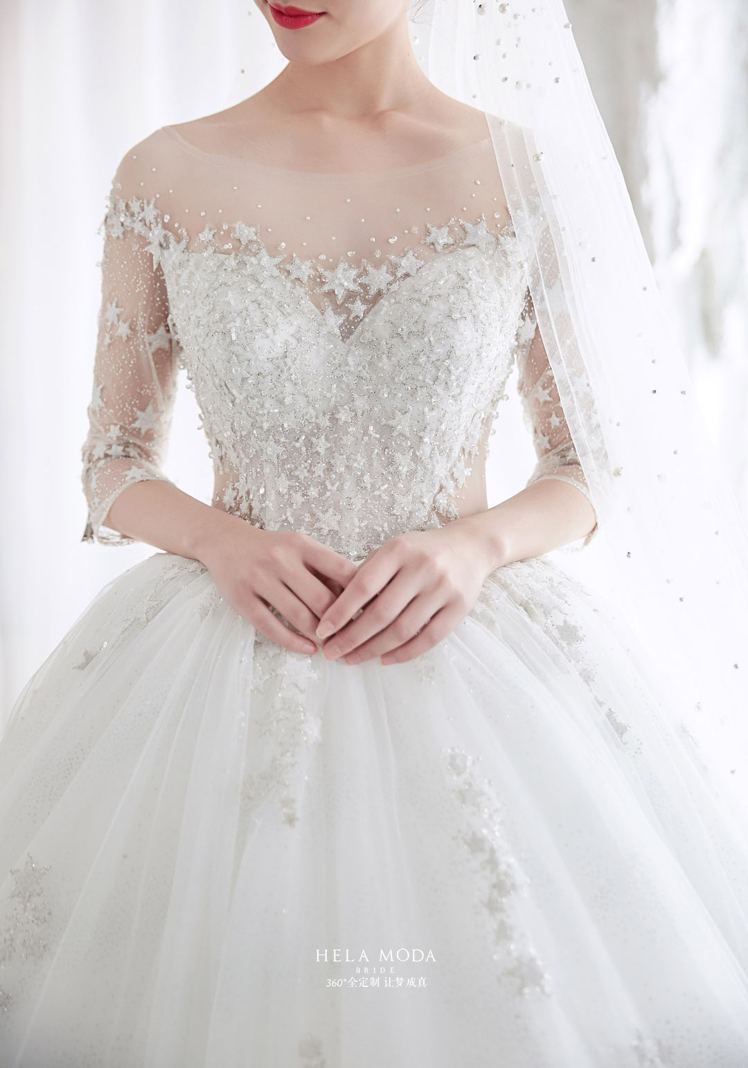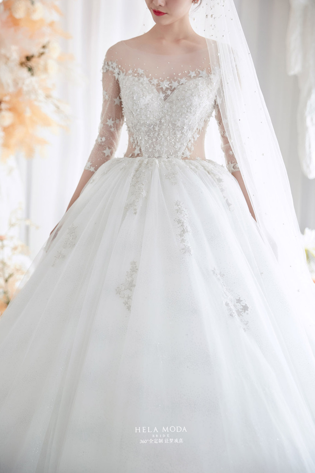 Hera Customized Stars 2022 New Long sleeves Palace Luxury Long Sleeves Big Trailing Bride Starry Main Wedding Dress