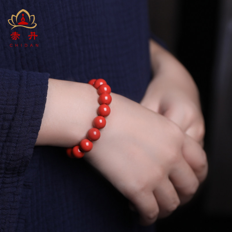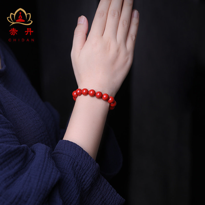 Cinnabar bracelets raw ore high content single circle temperament Buddha beads for men and women the year of the ox red rope cinnabar hand