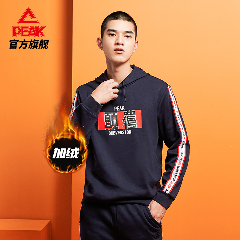 Peak official website hooded sweatshirt men's 2022 spring trend sports casual jacket plus velvet warm pullover tide tide